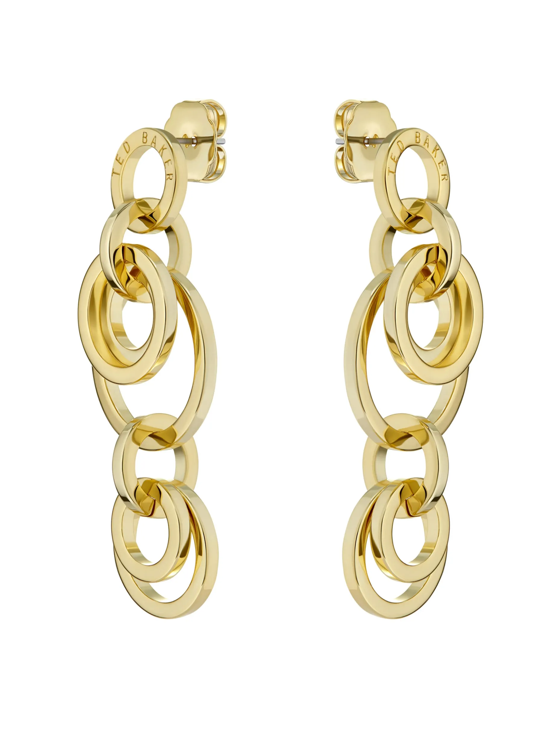 Create circles of influence with Ted Baker’s Huliet Muti Hoop Drop Earrings. A series of metal bands hang gracefully, adding playful movement to your style. Finished in gold-tone plating. Suitable for pierced earrings only. Comes in a Ted Baker branded gift box.