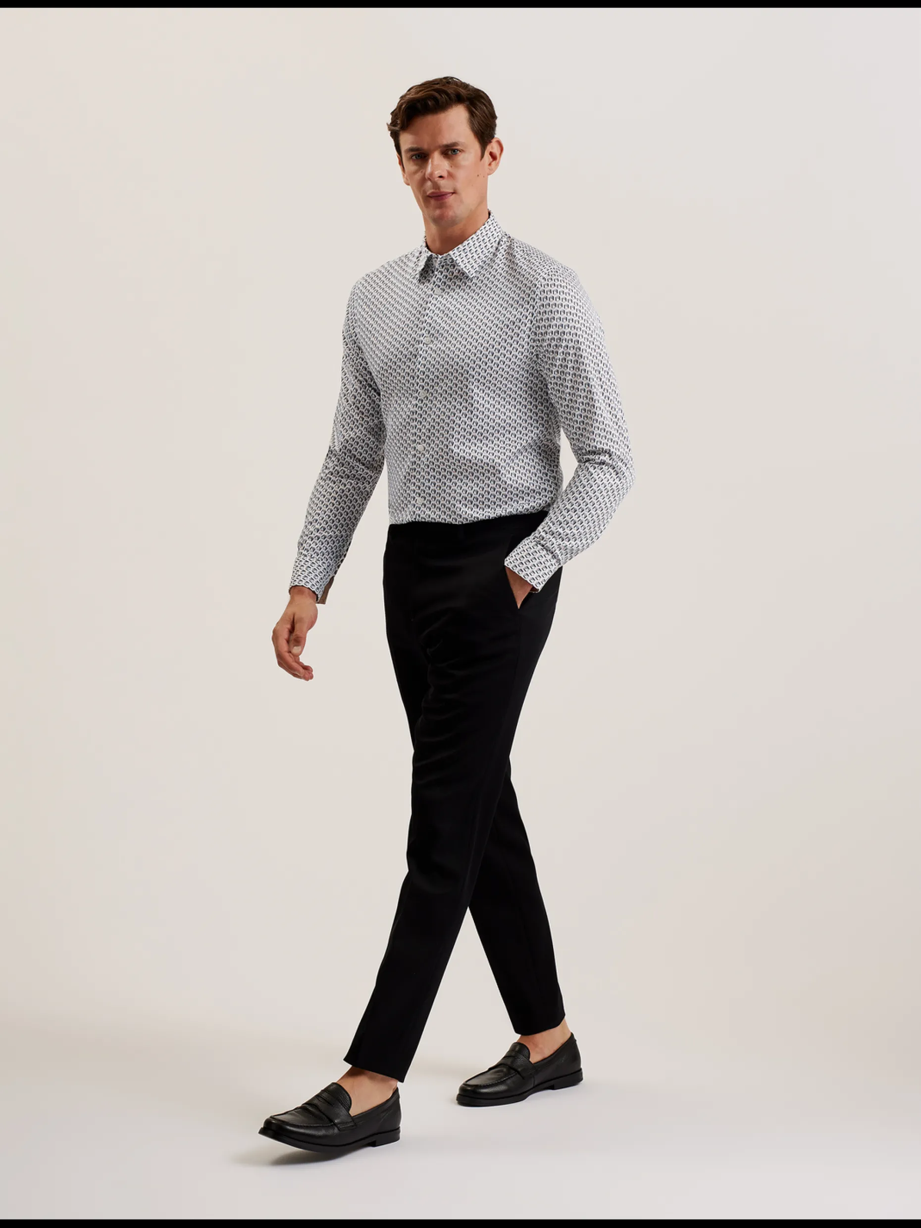 Joshhy Slim Fit Geometric Long Sleeve Shirt